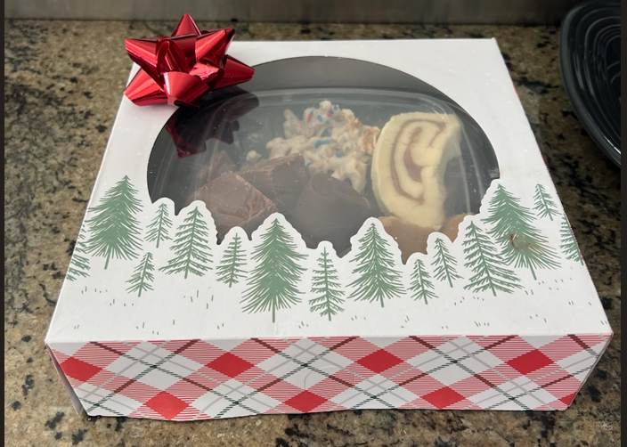 This 24 ounce tray contains two PB No Bake Cookies, two Chocolate No Bake Cookies, three cubes each of the Peanut Butter and Chocolate Fudge, three Chocolate Covered Marshmallows, one Haystack and one Peanut Butter Pinwheel.